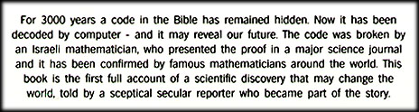 The "Bible code" itself is encoded in the Bible, and the same words also mean, "He hid, concealed the Bible." The suggestion is that there is another Bible encoded within the story that is openly told in the Old Testament. The computerized code clearly confirms that it is the "seal," the time-lock that until now has protected the hidden secrets. "Sealed before God" actually crosses "Bible code."